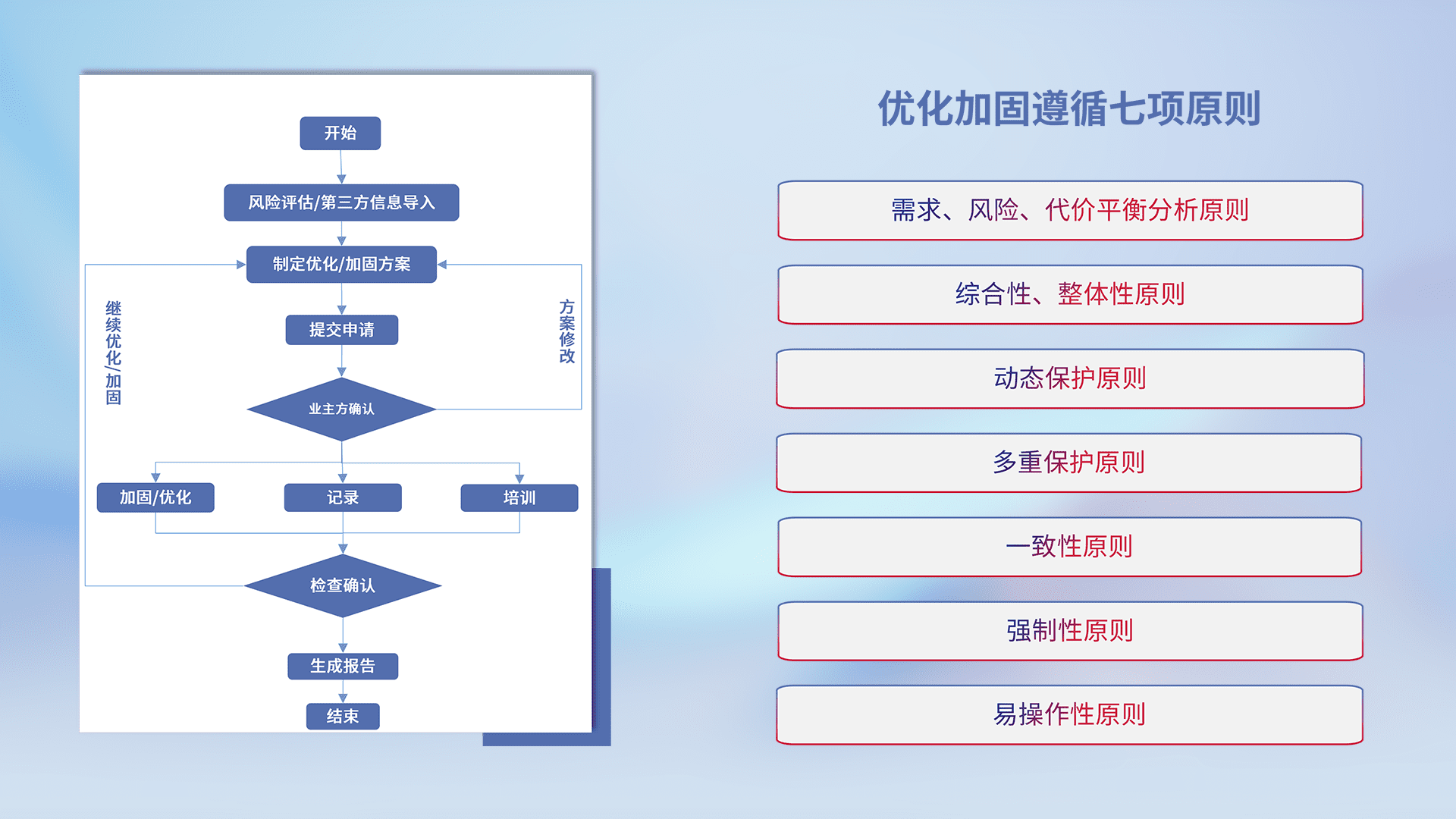 最大程度利用现有资产,,,对评估发现的问题进行封堵与整改,,防止漏洞被利用,,,提升整体网络安全性,,,为客户带来高标准的优化加固服务。。